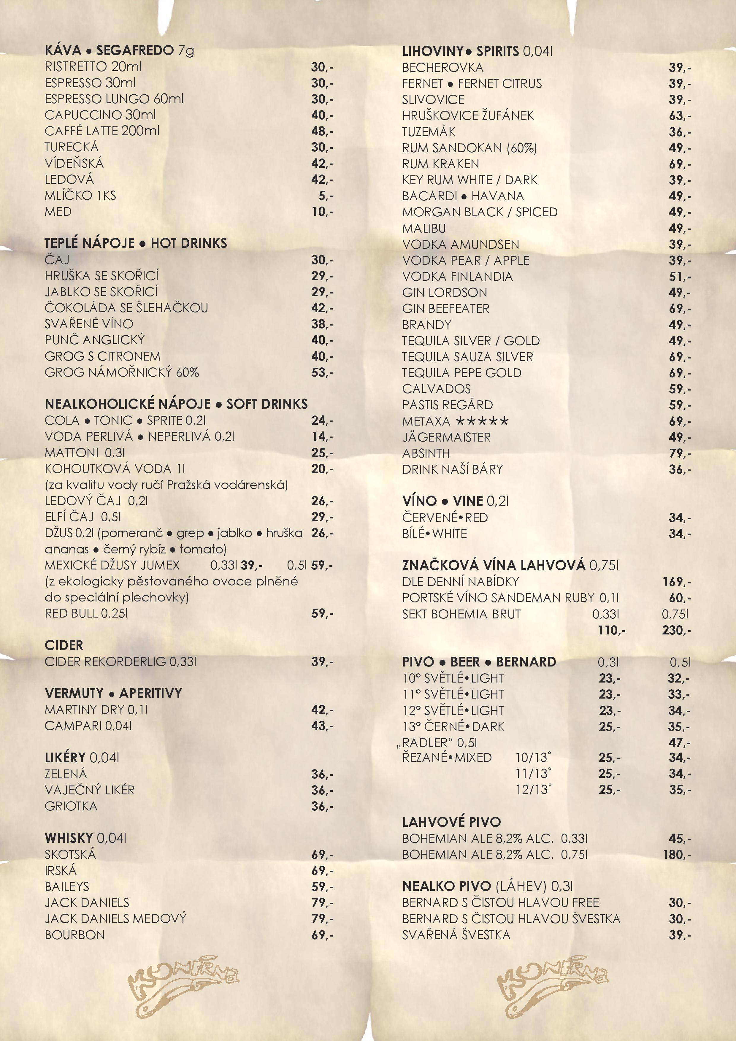 Jídelní a nápojový lístek